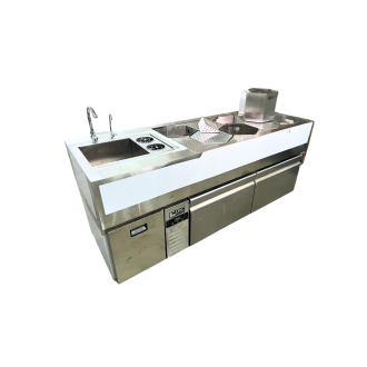 200 CM Cocktail station with drawers+sink+trash cabinet+Rinser